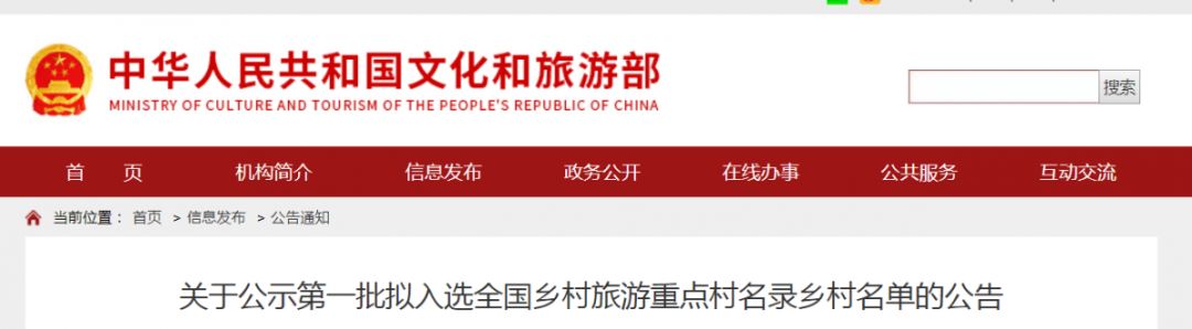 公告显示,按照《“十三五”旅游业发展规划》《国务院关于促进乡村产业振兴的指导意见》提出的建立全国乡村旅游重点村名录要求,文化和旅游部会同国家发展改革委联合开展了全国乡村旅游重点村名录遴选工作,确定了第一批拟入选全国乡村旅游重点村名录乡村名单,并予以公示。公示截至7月16日。