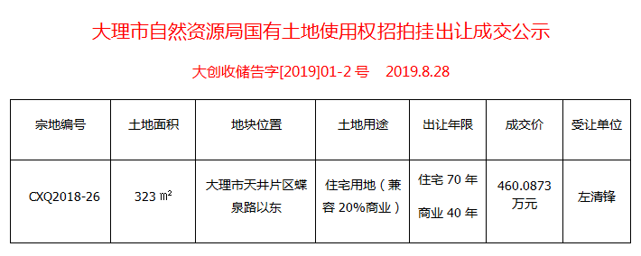 正在阅读:大理市天井片区蝶泉路以东一宗住宅用地,以460万成交!