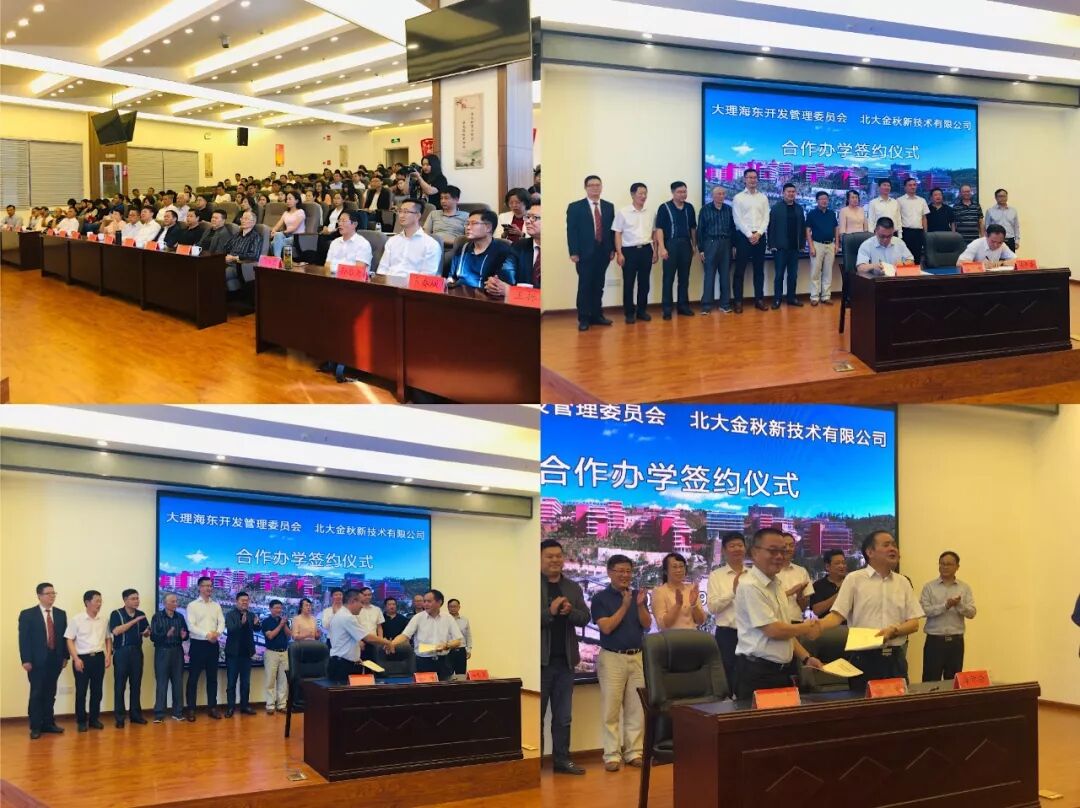 9月5日下午,大理海东开发管理委员会与北大金秋新技术有限公司签订海东新区中学校区合作办学协议。北大金秋新技术有限公司是北京大学学校资产直属一级校企,成立于1993年。今后将以“北大金秋模式”进行运营管理,将海东新区中学校区以“北大特色、西南领先、全国一流、世界知名”模式办学,逐步成为中国知名和有国际影响力的教育改革创新实验高地,打造大理教育名片。