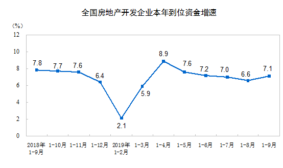 1—9月份,房地产开发企业到位资金130571亿元,同比增长7.1%,增速比1—8月份加快0.5个百分点。其中,国内贷款19689亿元,增长9.1%;利用外资104亿元,增长1.4倍;自筹资金42024亿元,增长3.5%;定金及预收款43877亿元,增长9.0%;个人按揭贷款19900亿元,增长13.6%。