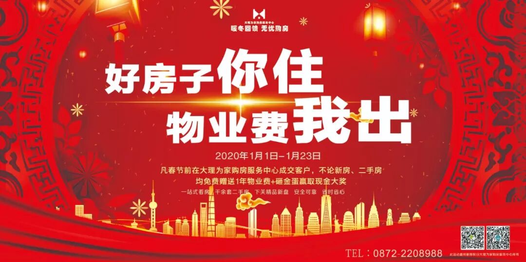 更重要的是,敲重点!!!大理为家购房服务中心暖冬回馈,无忧购房,凡在春节前在为家服务下成交的客户,无论新房二手房,送一年物业费。机会不容错过,大家速速下手!