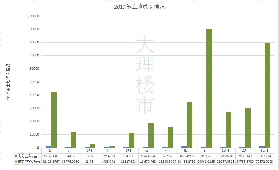 从以上数据可看出,1月份还是持续2018年的热度,相对较高,从春节后的2-5月就相对冷清,从8月份起,土拍又恢复了活跃,大理市占其一。