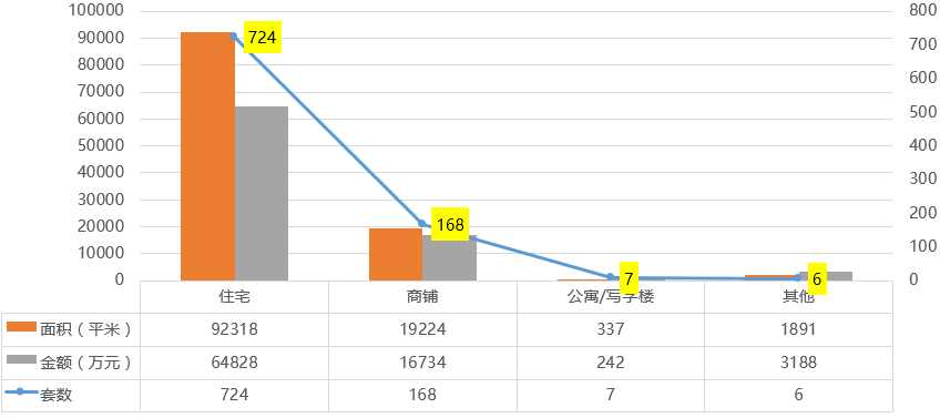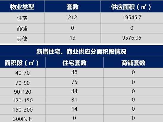 7月新增物业类型依旧以住宅为主,整体新增住宅供应面积19545.7㎡,环比下降69.6%,主要供应面积段为70-90㎡,商铺没有新增供应。