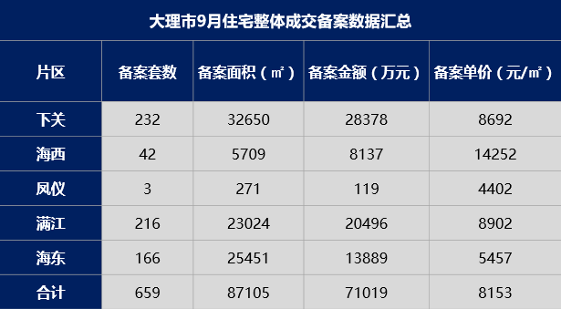 大理房地产专业分析9月简报,大理房地产市场现状咋样,来看看这些数据!