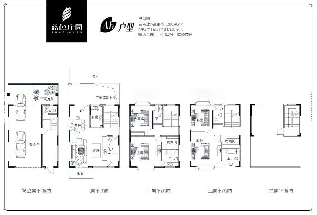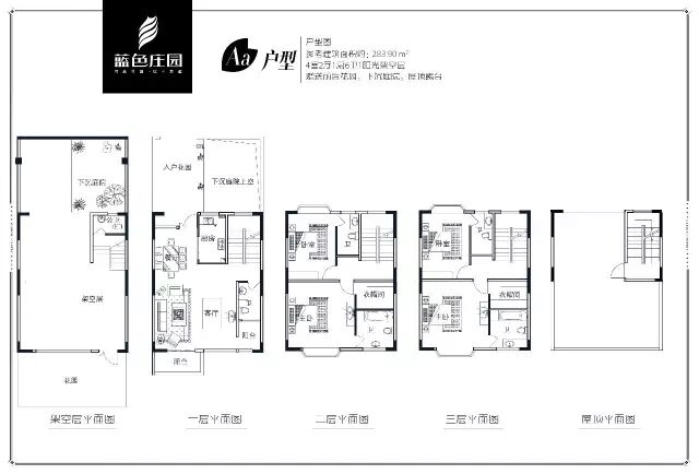 蓝色庄园城市别墅,面积在280㎡-361㎡,有花园,有下沉庭院,有露台,每个房间都是套房化设计,各自有各自的空间,又能相互照顾。