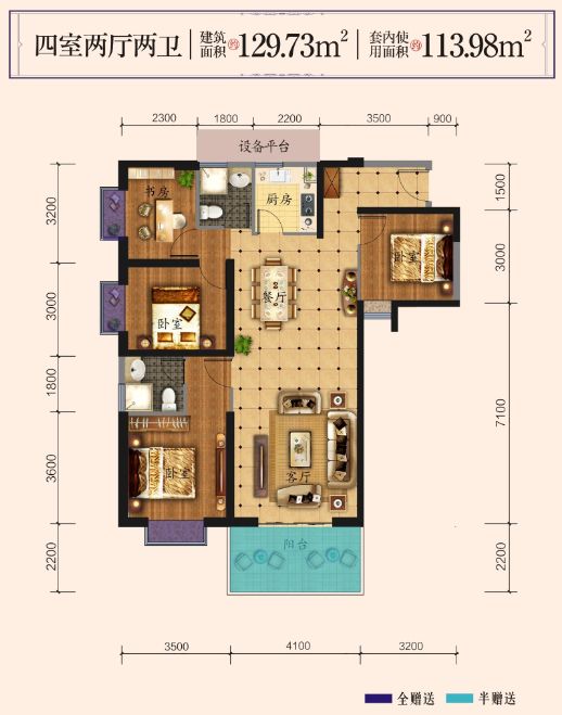 这次加推的房源集中在2栋。面积区间在92-129㎡,有A户型、B户型、C户型、E户型4个户型。主要是三房和四房。