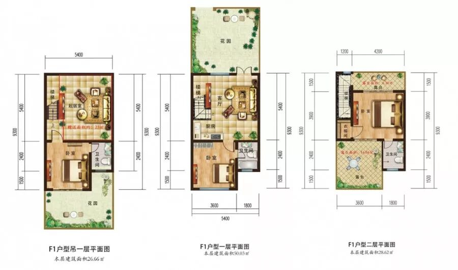 叠加别墅/建筑面积60.99㎡/两室一厅一厨一卫+赠送花园